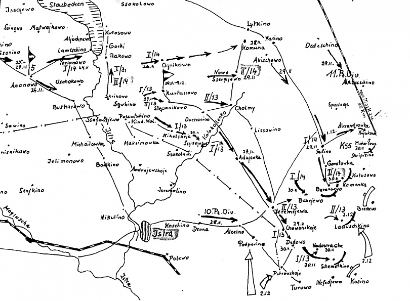 Есть немецкая карта, на которой показаны эти бои 2 декабря в районе Селиванихи-Петровского. В самом низу стрелочка на Петровское.